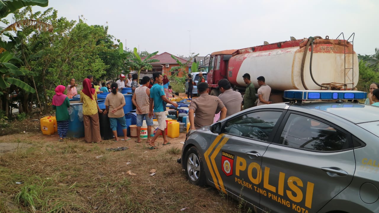 TANJUNGPINANG (KEPRI) – Polres Tanjungpinang melalui Polsek Tanjungpinang Kota menyalurkan air bersih kepada warga Kelurahan Kampung Bugis dan Kel. Senggarang.
