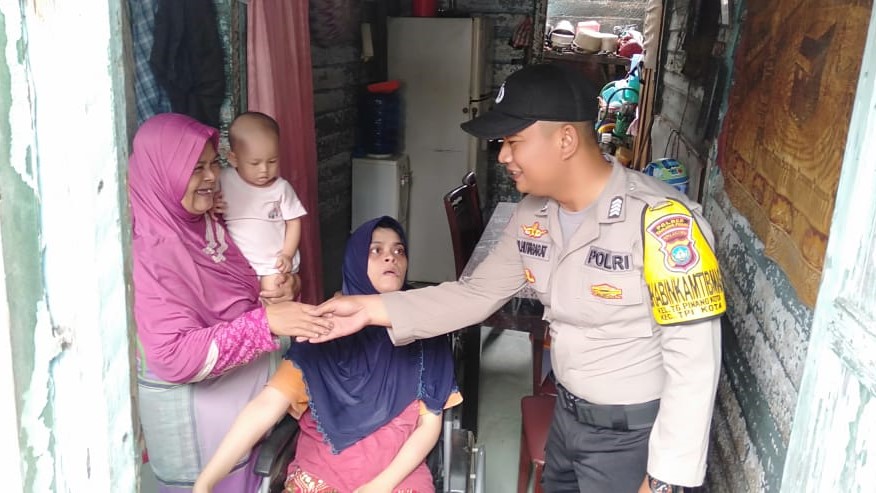 TANJUNGPINANG (KEPRI) – Bhabinkamtibmas Polsek Tanjungpinang Kota Polres Tanjungpinang Bripka Jon R. Hutabarat memberikan bantuan kursi roda kepada salah seorang warganya yang mengalami Disabilitas, Rabu (02/10).