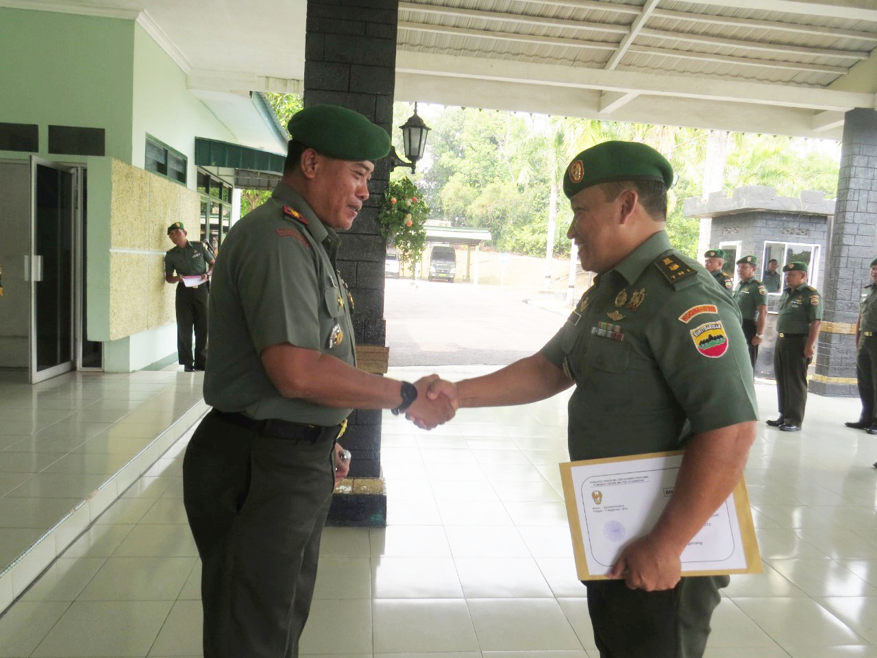 Kodim Bintan, Tanjungpinang – Komandan Kodim 0315/Bintan Letkol Inf I Gusti Ketut Artasuyasa memimpin upacara Korp Raport dan Pelepasan Kepala Staff Kodim (Kasdim) 0315/Bintan di Koridor Makodim 0315/Bintan, Jalan Ahmad Yani Km 5 Kota Tanjungpinang, Jumat (13/9/2019).