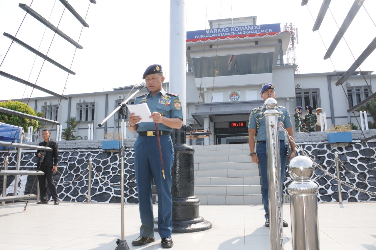 TANJUNGPINANG (KEPRI) – Komandan Pangkalan Utama TNI Angkatan Laut (Danlantamal) IV Laksamana Pertama TNI Arsyad Abdullah, S.E., M.A.P., secara resmi menyambut Siswa Mengenal Nusantara (SMN) Tahun 2019 dari Provinsi Kalimantan Utara yang berlangsung di Lapangan Apel Markas Komando (Mako) Lantamal IV Jl. Yos Sudarso No 1 Batu Hitam Tanjungpinang, Kamis (15/8).