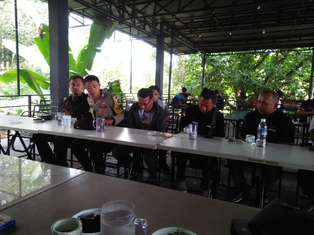 Kumpul bareng dan bersambang bercerita di Cafe ABEE, Kelurahan Kijang Kota, Kapolsek Bintim Kompol Krisna Ramadhani didampingi Pimred LIDIKNEWS.CO.ID Azil Rais Anduspil memotong kue hari ulang tahun (HPN) ke-74 dan Poto bersama dengan awak media.