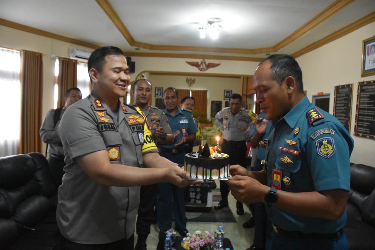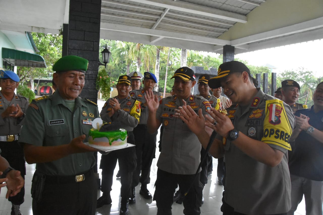 HUT TNI Ke-74, Kapolres Tanjungpinang Kunjungi Markas TNI dan Berikan Kejutan Kue Ulang Tahun
