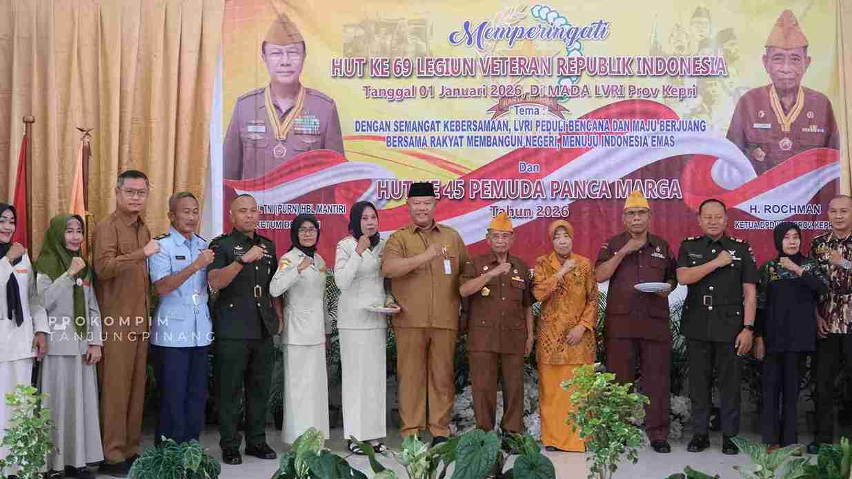 Tanjungpinang, Lidiknusantara.com – Pemerintah Kota Tanjungpinang menegaskan komitmennya kepada para veteran melalui peringatan HUT ke-69 Legiun Veteran Republik Indonesia (LVRI) dan HUT ke-45 Pemuda Panca Marga (PPM) yang digelar di Markas Daerah LVRI Provinsi Kepulauan Riau, Senin (12/1/2026).