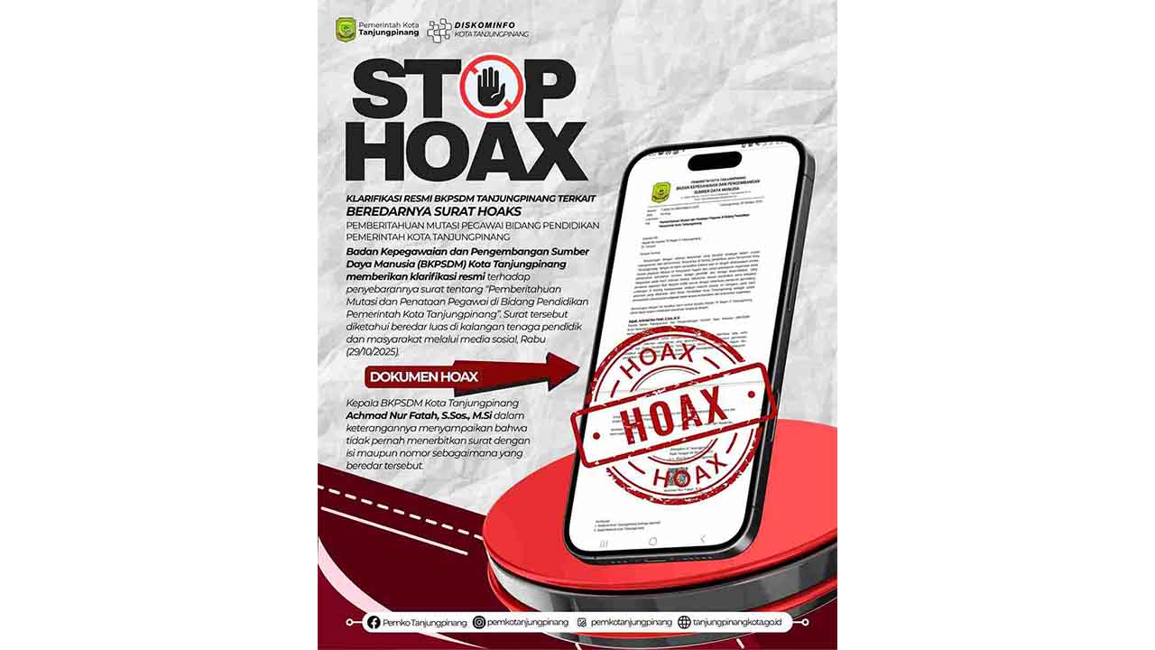 Kepala Dinas Komunikasi dan Informatika (Diskominfo) Kota Tanjungpinang, Teguh Susanto, menegaskan hal serupa. “Surat itu tidak sah dan bukan produk resmi pemerintah. Format, penomoran, dan isi surat tidak sesuai dengan ketentuan administrasi resmi Pemko,” ujarnya, Rabu (29/10/2025).
