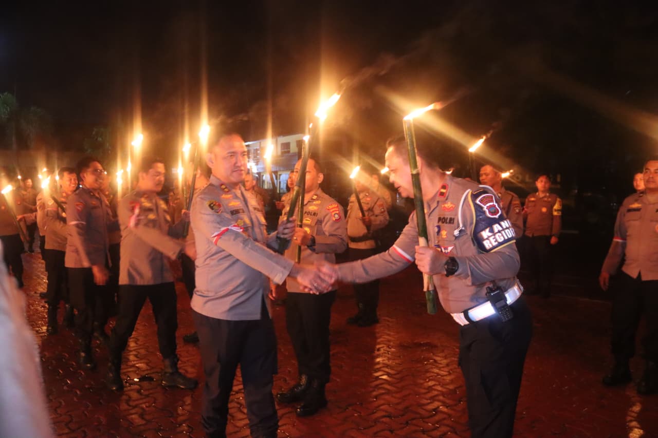 Rangkaian kegiatan diawali dengan doa bersama, dilanjutkan pembacaan Renungan Ksatria Bhayangkara. Personel kemudian mengenakan pita Rantai Integritas Polri sebagai simbol komitmen moral, disusul penyalaan obor dan Api Ksatria Bhayangkara oleh Kapolres. Kegiatan ditutup dengan pembacaan ikrar dan saling berjabat tangan sebagai wujud soliditas dan kebersamaan.