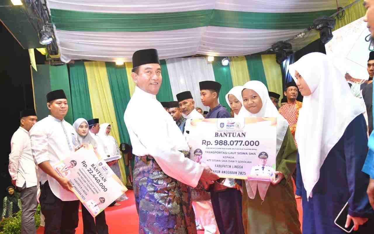 Selain kegiatan keagamaan, Pemprov Kepri menyerahkan bantuan sosial senilai puluhan miliar rupiah bagi masyarakat Lingga. Bantuan meliputi hibah rumah ibadah, insentif guru keagamaan, beasiswa mahasiswa, bantuan pertanian dan perikanan, hingga subsidi untuk pelaku UMKM.