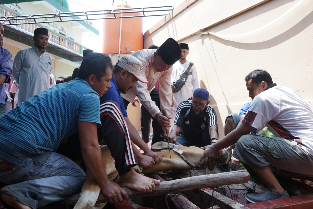 Usai melaksanakan Salat Ied, Syahrul melanjutkan kegiatannya dengan melaksanakan penyembilhan hewan kurban di Masjid As-Sakinah KM 9 Tanjungpinang.
