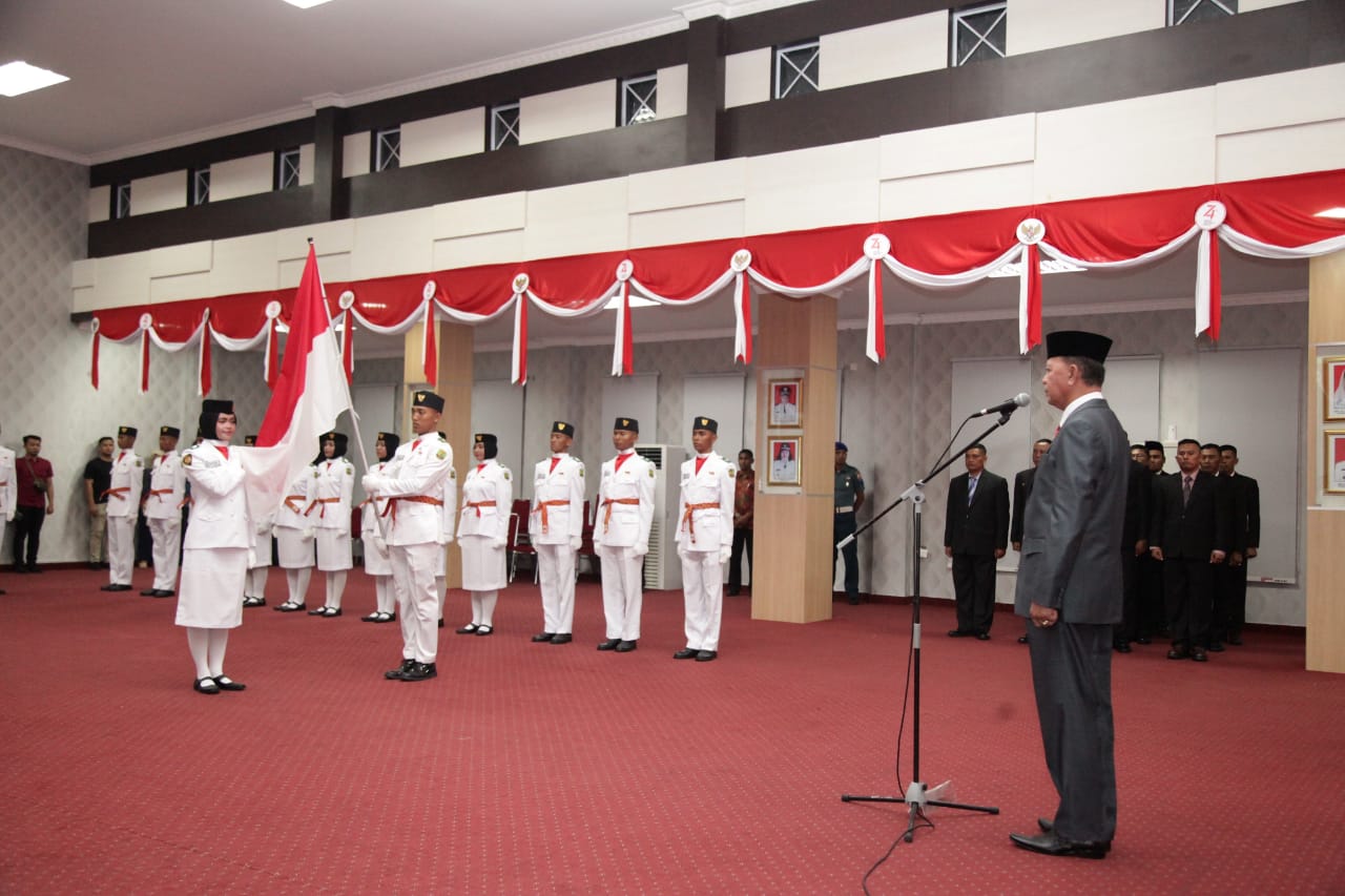 TANJUNGPINANG (KEPRI) – Jelang pelaksanaan pengibaran bendera detik-detik Proklamasi Kemerdekaan ke-74 Republik Indonesia, Dinas Kepemudaan dan Olahraga Kota Tanjungpinang melaksanakan pengukuhan Pasukan Pengibar Bendera Pusaka Kota Tanjungpinang tahun 2019 oleh Walikota Tanjungpinang, di Aula Sultan Sulaiman Badrul Alamsyah, Kantor Walikota Tanjungpinang, Kamis malam (15/8).