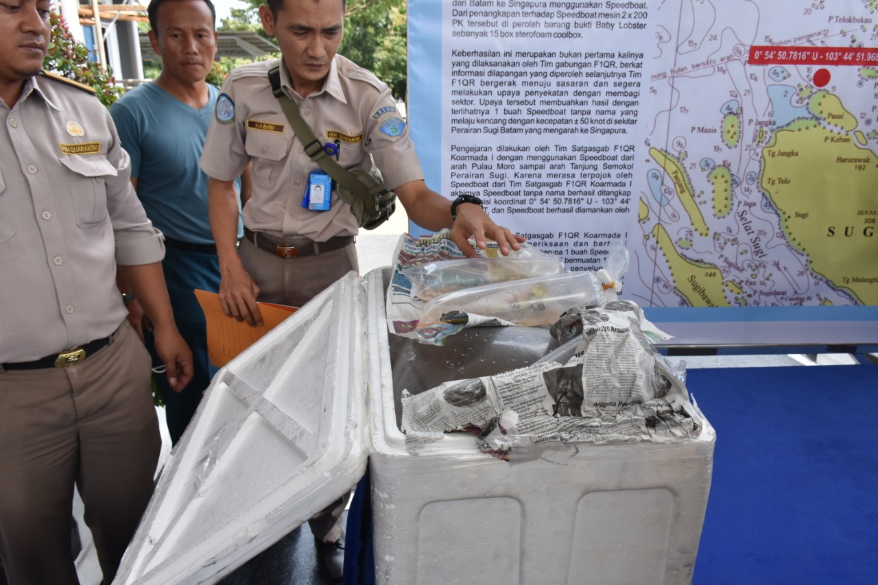 Dari penangkapan tersebut Tim Satgasgab Koarmada 1 berhasil mendapati barang bukti berupa baby lobster yang dikemas dalam 15 box sterofoam coolbox. Tim juga menciduk 3 orang tersangka penyelundupan baby lobster tersebut.